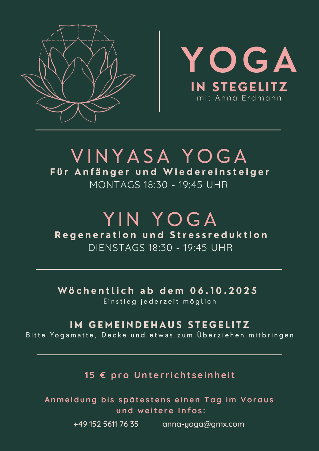 Yoga bedeutet für mich nicht Leistung oder "sich verausgaben", sondern ein bewusster Weg zu mehr Präsenz, Kraft und Leichtigkeit. Jeder Mensch bringt eigene Themen und Bedürfnisse mit in die Stunde - und genau darin liegt die Stärke von Yoga: Es passt sich dir an.